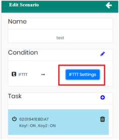 ۹- در پنجره باز شده اطلاعات سناریو را مشاهده میکنید بر روی IFTTT Settings کلیک نمایید.