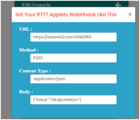 10- در این پنجره اصلاعاتی برای شما نمایش داده میشود که در سایت IFTTT هنگام تعریف اپلت خود دقیقا باید مشابه با همین صفحه اطلاعات را تکمیل نمایید.