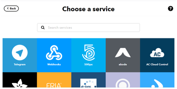 در این مرحله تمامی اپلت هایی که در IFTTT قابل انتخاب برای IF This هستند نمایش داده میشود شما بسته به نیاز خود می توانید یکی را جستجو و انتخاب کنید